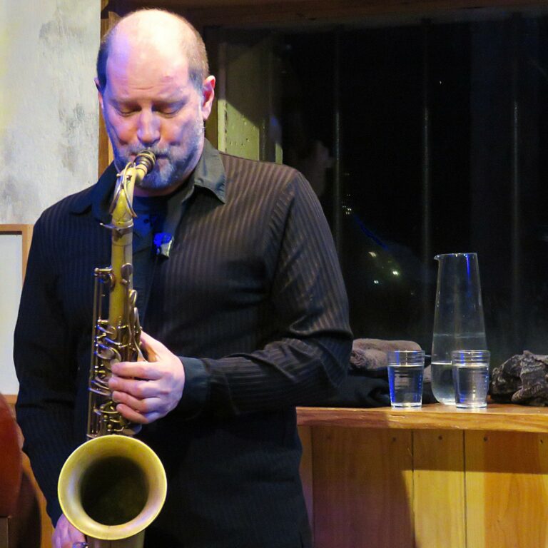 C’était un peu l’esprit qui régnait ce 7 février puisque Fred Borey, au bout de quelques morceaux déclara qu’il n’y avait pas de setlist : dans le grand sac d’un répertoire éclectique mais choisi, on puise selon l’humeur et se lance sans barguigner. Il ne s’agira pas toutefois d’un énième ratissage de standards éculés, témoin cet allègre Remember par lequel débuta le premier set. Pour cette composition d’Irving Berlin très visitée, c’est la version d’Hank Mobley que Borey évoqua à titre d’exemple. Ce choix n’étonnera pas, car à défaut de renvoyer à une esthétique hard-bop qui n’est pas la sienne, le jeu particulièrement soigné de ce musicien pour musiciens en appelle à une éthique de jeu qui distingue Borey entre tous. Sa sonorité mate, jamais appuyée, son jeu réfléchi, sans l’ombre d’une roublardise, qui accorde une absolue confiance à la mélodie, incarne l’attitude d’un modernestory teller. Sa prosodie réfléchie dénuée d’afféteries, de complications sophistiquées mais avare de clichés s’appuie sur un soin du détail, une conduite de la phrase à la logique sensible sont partagés en outre par ses comparses qui épousent ses idées avec une discrétion qui rehausse encore leur efficacité. Damien Varaillan(b) joue de préférence en haut du manche embrassé d’un toucher exquis. Son soutien ferme fleurit les lignes sans les bousculer, avec un goût sans défaut : il est un peu le gypsophile d’un bouquet dans lequel Stéphane Adsuar (dms) pique de loin en loin les notes vives qui en rehaussent le plein épanouissement.