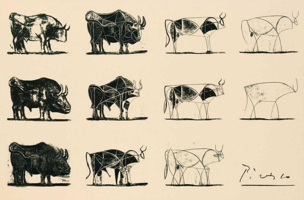 Je suis profondément inspiré par la façon dont Picasso transforme un taureau de plus en plus épuré dans sa serie de lithographies « Le Taureau ».